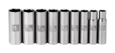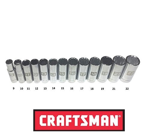 No matter whether you’re working under the hood at the job site or just around the house the Craftsman 9 pc Standard 6 pt Deep 1/2 sockets set gives you the power and grip needed to get the job done. Crafted from rugged alloyed steel and machined to precise tolerances each wrench delivers a solid hold that prevents rounding while delivering a smooth torquing action to every fastener. The 9 pc Standard 6 pt Deep 1/2 Sockets set boasts high visibility high contrast markings perfect for working in a variety of lighting conditions making it a great fit both under cars and behind appliances. Each piece is built for durability and resists fading chipping and corrosion while including a spread of common SAE sizes it’s a great fit for any toolbox. Built to last and backed by the Craftsman Forever Guarantee toss the set in your kit and get the job done right for decades. Craftsman 9 pc Standard 6 pt deep 1/2 sockets includes: 1/2 9/16 5/8 11/16 3/4 13/16 7/8 15/16 1 in. sockets •Sockets are designed to grab a variety of surfaces including slightly rounded bolts •High contrast markings are permanent and will resist fading and chipping •Deep sockets provide added access and can accommodate long bolts •Large easy to read markings make working in low light simple •Backed by the Craftsman Forever Warranty More Reviews On Amazon