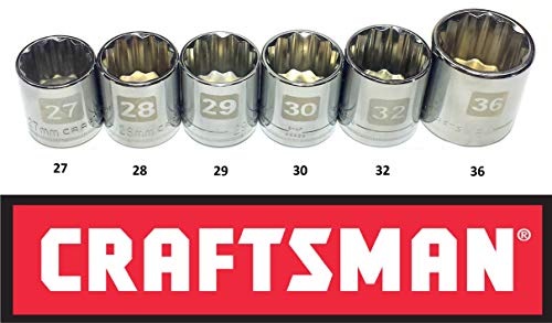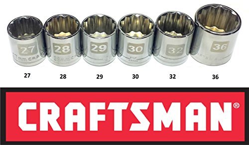 Design: 12 Point. Metric. Sizes: 27mm 28mm 29mm 30mm 32mm 36mm. Number of Pieces: 6 pc. Material: Alloy Steel. Drive Size: 1/2 in. Drive in. More Reviews On Amazon