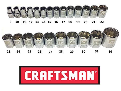 1.) Craftsman Laser Etched Easy Read 24 Piece Metric MM 1 2 Drive 12 Point Shallow Socket Set